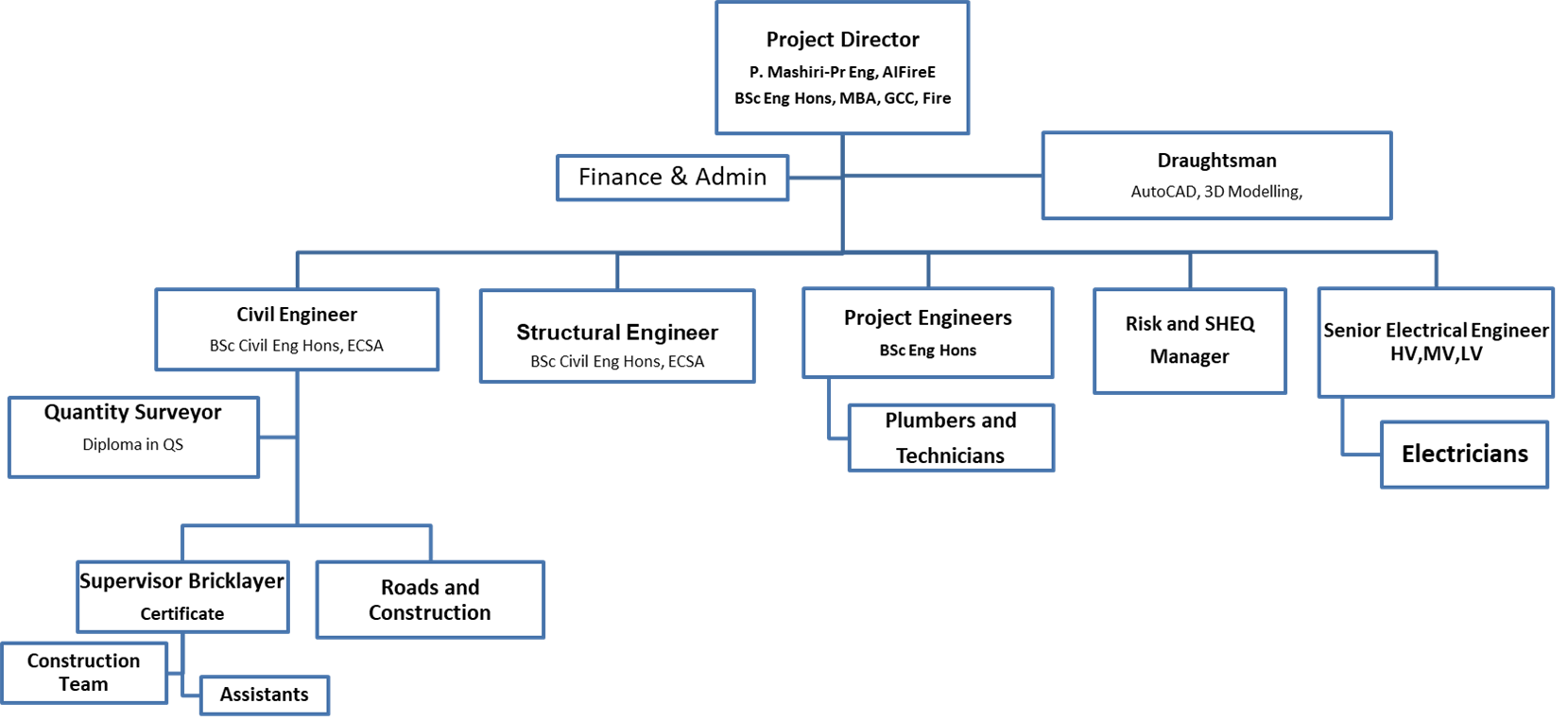 Our philosophy hinges on the following values: Upholding the principles of good engineering ethics as guided by professional boards’ codes of practices. Continually provide quality service to all clients to complete satisfaction. Consistently engage all stakeholders transparently.